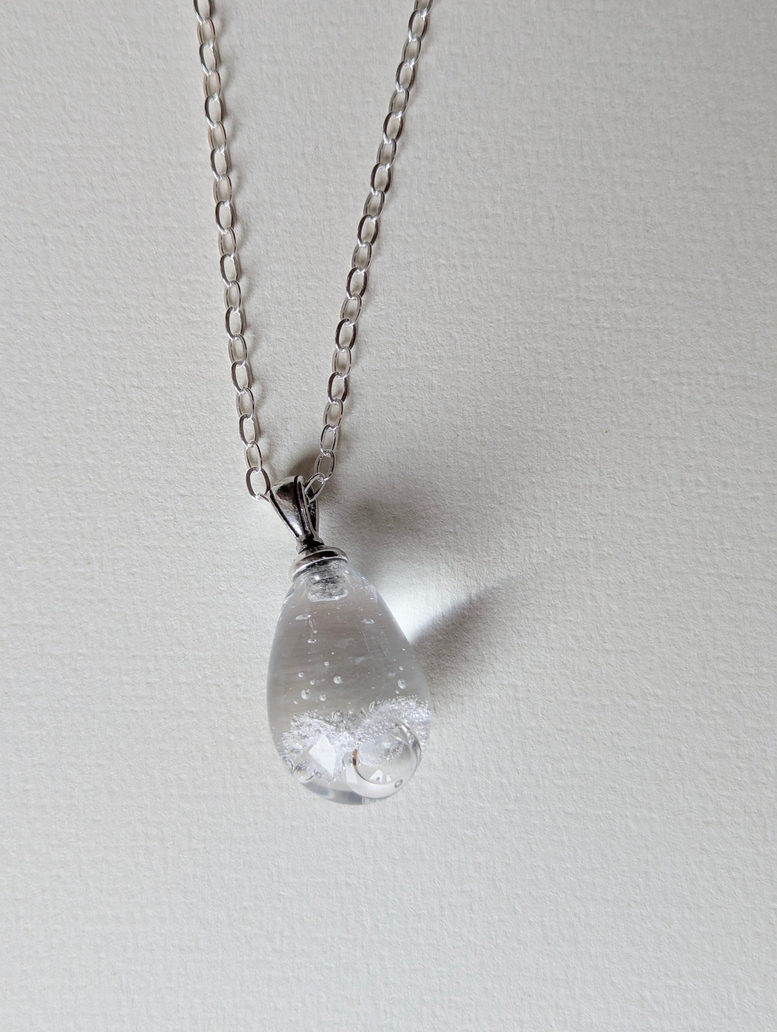 Sa transparence capte la lumière et les bulles à l'intérieur lui donnent vie et profondeur, renforçant son impact.